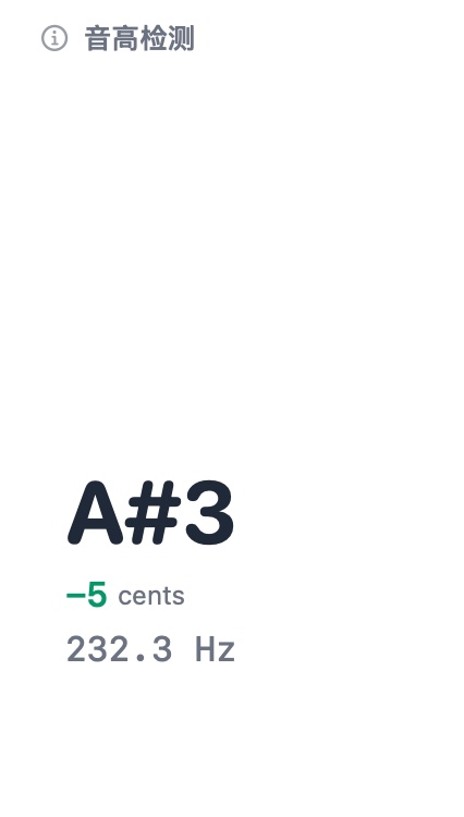 Real-time display of pitch frequency and note name for accurate pitch awareness.