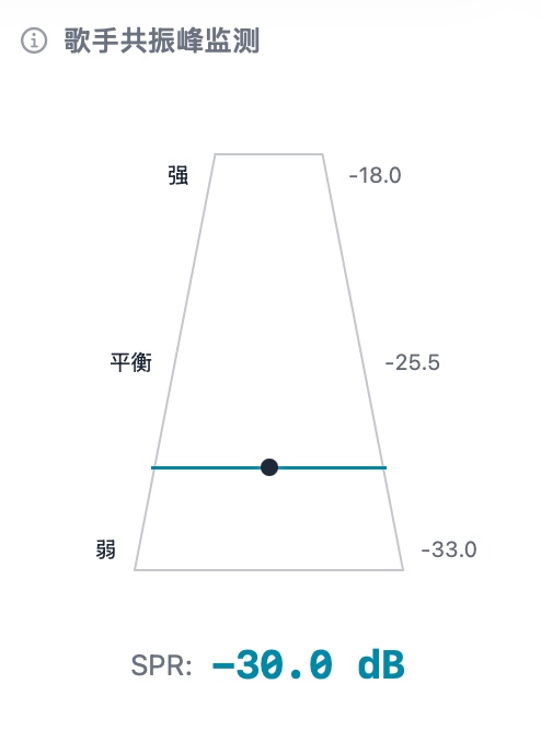 Monitors vocal projection power by measuring high-frequency energy concentration in the 2-4kHz range. Good projection means your voice cuts through accompaniment.