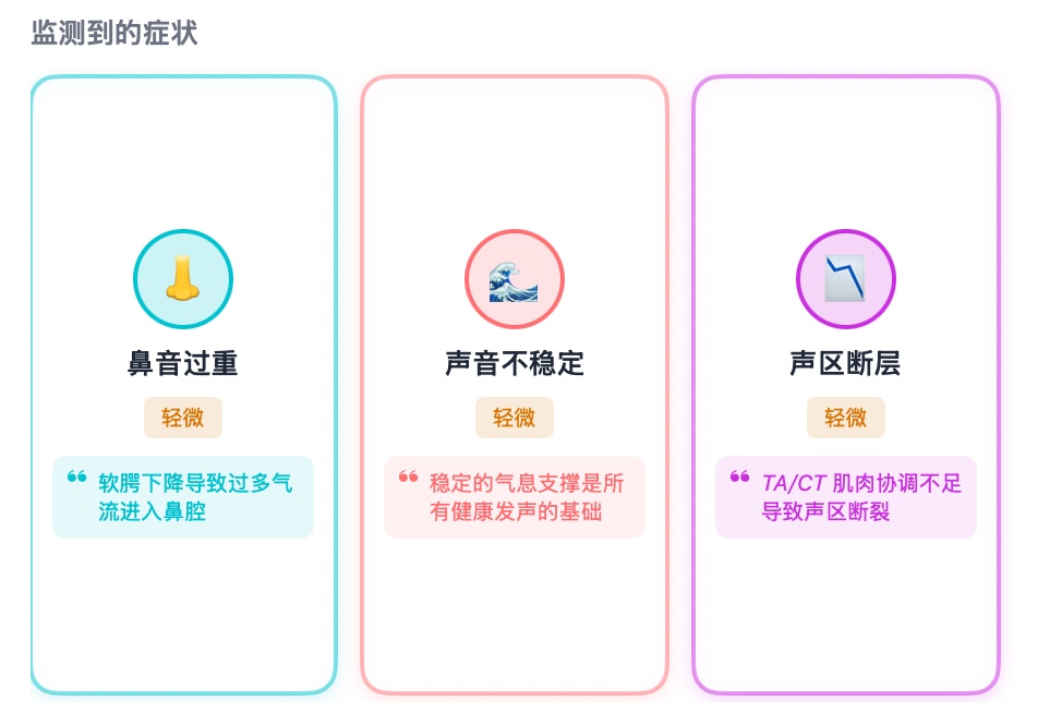 Real-time detection of common vocal issues to help identify and improve habits.